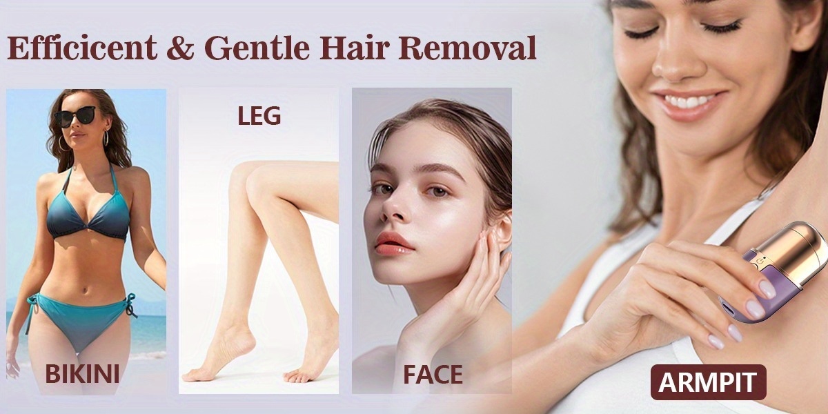 • New Mini Painless Hair Remover, USB Rechargeable for Women's Eyebrows and Face, Suitable for Underarms, Lips, Body, Arms, Legs, Beard, Chin